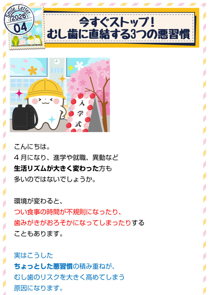 ブログ 虫歯 よかったらシェアしてね! URLをコピーしました! URLをコピーしました! 舌が白い?!舌苔が引き起こすトラブル この記事を書いた人 miyazaki-shika 関連記事 舌が白い?!舌苔が引き起こすトラブル 2026年3月13日 放置すると歯が抜ける!?「歯石」のリスクとは? 2026年2月1日 要介護の入口!?口腔機能低下症とは 2026年1月20日 お子さんの足ぶらぶらはNG!姿勢が悪いとむし歯になる!? 2025年12月12日 こんなことまで全部見える!レントゲンでわかること 2025年11月11日 命に関わる!?誤えん性肺炎の恐怖 2025年10月14日 気になるお口のニオイ…口臭の正体とは!? 2025年9月12日 ゴシゴシ磨きは歯の大敵!歯を長持ちさせるには? 2025年8月12日
